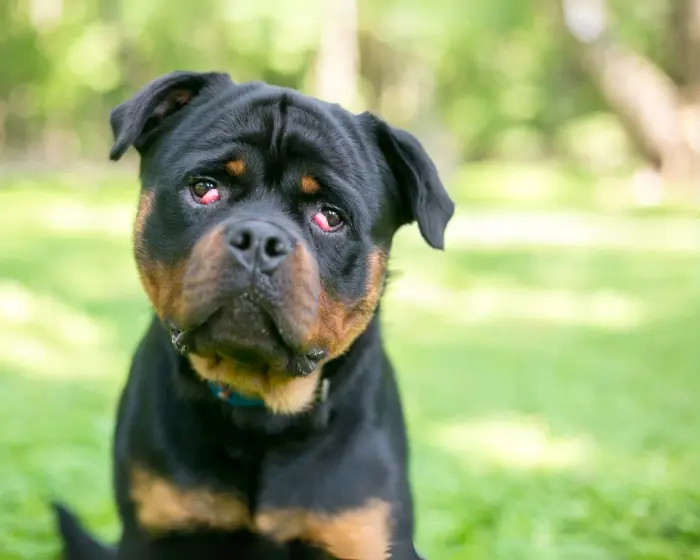 Cherry eye eller prolaps af det 3. øjenlågs kirtel.