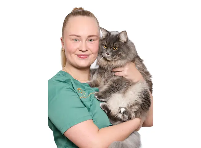 På klinikken kan du finde mig mange steder. Jeg fylder op, tager telefoner, sidder i skranken og hjælper gerne med at holde i konsultationerne, hvis der er brug for det. Jeg nyder især at hilse på jer og jeres søde dyr i venteværelset, samt at give de indlagte patienter lidt ekstra kærlighed.