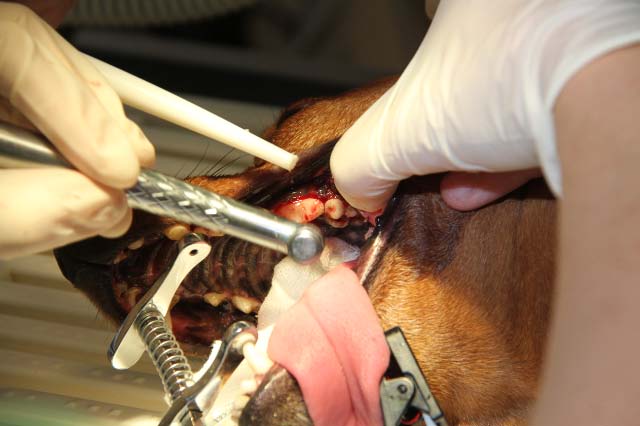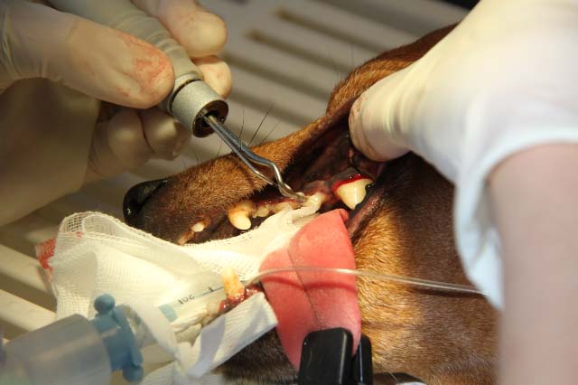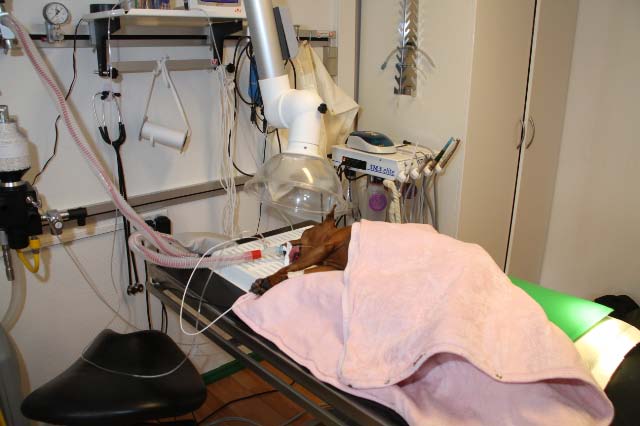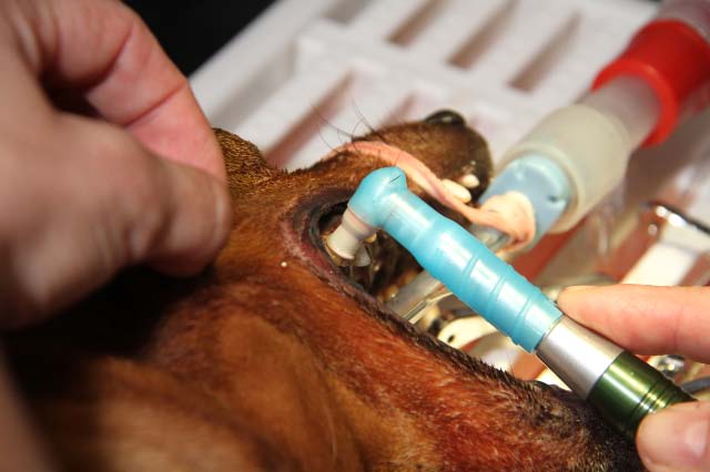 Når en hund skal have en tandbehandling, skal den bedøves og intuberes, dvs. at den skal have en slage ned i luftrøret.